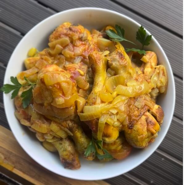 If you’re looking for a simple yet soul-satisfying Persian dish, this one’s for you. Inspired by the flavors of my Iranian childhood in Northern California, this chicken dish combines aromatic spices, tender onions, and the unmistakable magic of turmeric and spice in a one-pan meal that’s perfect for family dinners or festive gatherings.